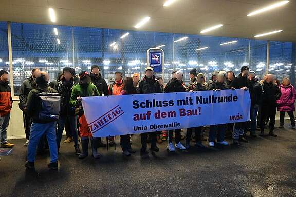 Mit Aktionen am Bahnhof Brig am frühen Morgen, verlängerten Neunuhrpausen auf einigen Baustellen im Raum Sitten, sowie einer grossen Versammlung auf einer Baustelle in Monthey, mobilisierten und drückten die Bauarbeitenden, unterstützt von der Gewerkschaft Unia, ihren Unmut über das Ausbleiben einer Lohnerhöhung aus. Man ist wütend und will sich nicht so abspeisen lassen. Die Forderung ist klar: Bauarbeiter haben Anspruch auf eine Lohnerhöhung! Demzufolge appellieren sie an eine Kursänderung des Baumeisterverbandes und fordern diesen auf, Verhandlungen mit den Gewerkschaften zu führen.